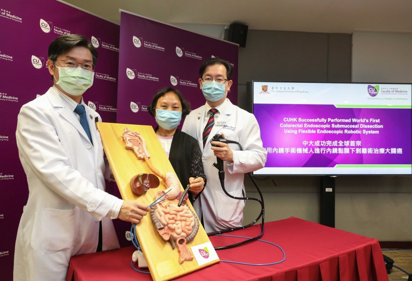 香港中文大學近日成功利用內鏡手術機械人,以內鏡黏膜下剝離術(簡稱 ESD)治療大腸癌,為全球首例!今次成功個案令中大團隊相信,此嶄新技術將有助提升內鏡切除術成效,將令更多早期大腸癌病人受惠。